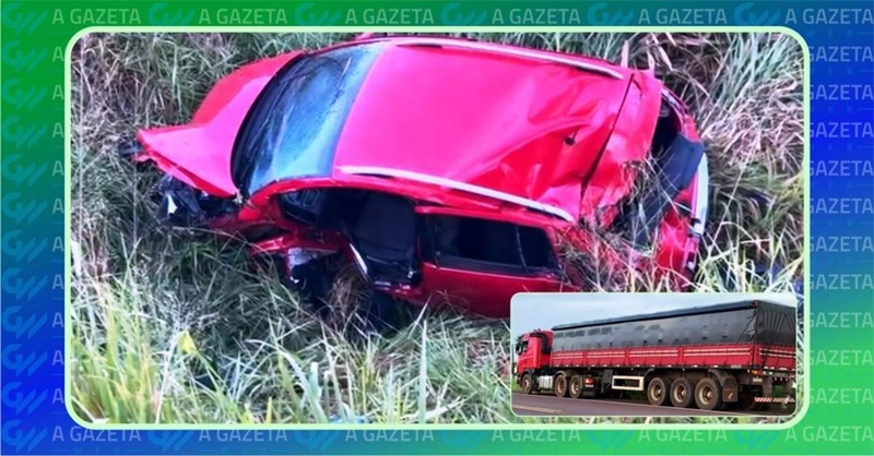 Com o impacto, o carro foi arremessado para fora da pista, vindo a parar em um barranco.
