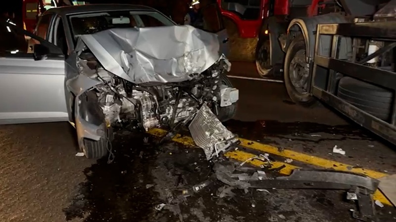 Forte batida entre carro e caminhão ocorreu no quilômetro 603, no Contorno Oeste, em Cascavel, na noite de ontem.