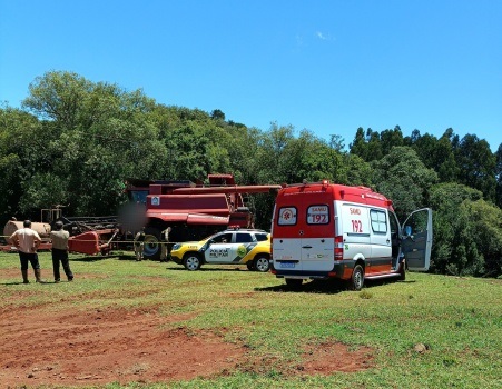 Um jovem de 25 anos sofreu um acidente em uma empresa localizada no Bairro XIV de Novembro, em Cascavel, às margens da BR-277.