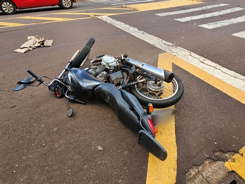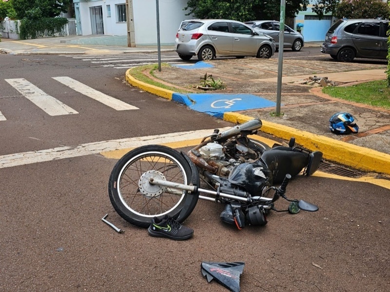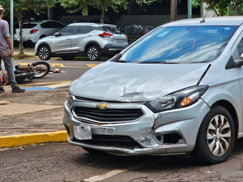 Um motociclista ficou ferido após um acidente de trânsito registrado por volta das 13h55 desta quinta-feira (06), no cruzamento das ruas Dom Pedro II e Nossa Senhora do Rocio, no Centro de Toledo. A colisão envolveu um GM Onix e uma motocicleta Honda CG Fan 125.