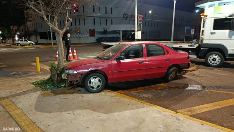 Na sequência, o carro ainda atingiu uma árvore com a lateral direita, atravessou a pista, subiu parcialmente na calçada do lado oposto e colidiu frontalmente com outra árvore.