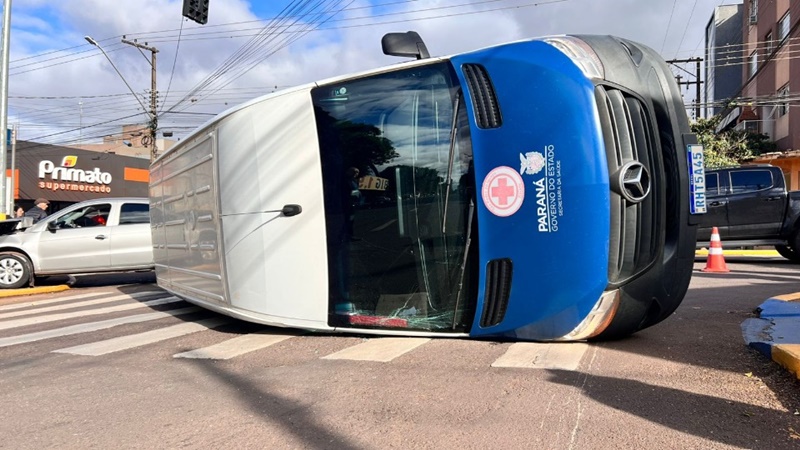 Motorista ficou ferido após batida entre van da Secretaria de Saúde de São Pedro do Iguaçu e Volkswagen Voyage no Centro de Toledo. O acidente foi registrado na tarde desta segunda-feira (28), por volta das 15h10.