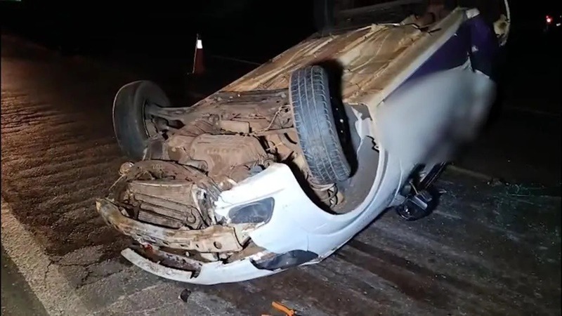 O carro atravessou o canteiro central da rodovia e capotou na pista contrária, parando com as rodas voltadas para cima.
