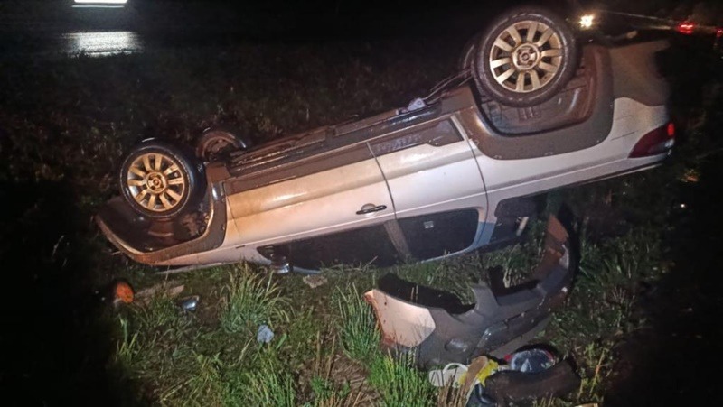 O capotamento acorreu nas imediações da ponte sobre o Rio Lopeí, e envolveu uma picape Strada com placas de Cascavel.