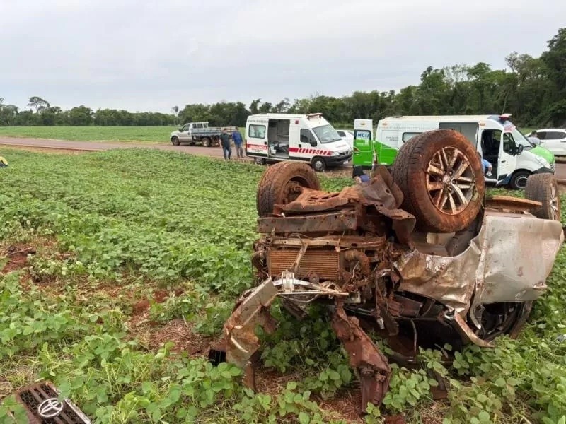 Conforme informações, uma caminhonete Toyota Hilux seguia pela estrada rural em direção ao distrito de Arroio Guaçu, quando o condutor perdeu o controle da direção e o veículo capotou várias vezes na curva do aterro.