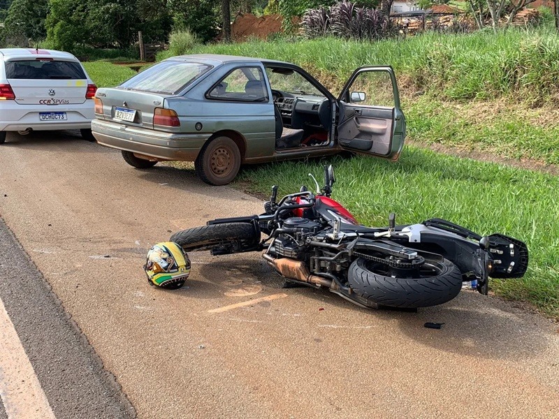 De acordo com informações da PM , a motocicleta acabou colidindo na traseira do HB20, resultando em danos materiais e ferimentos no condutor da moto.
