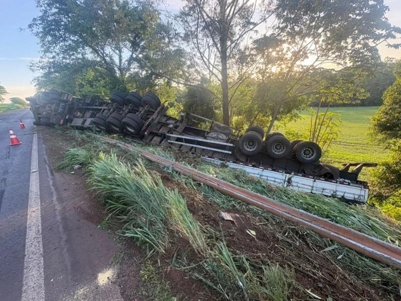 Conforme apurado no local, uma carreta bitrem seguia no sentido Guaíra para Mercedes, quando acabou tombando na região da Sanga Mate, à 3 km da cidade de Mercedes.