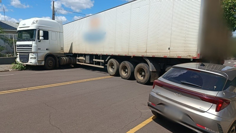 Uma carreta frigorífica desgovernada provocou transtornos no trânsito de Toledo, na tarde desta terça-feira (18), ao colidir com dois veículos estacionados e interditar completamente a Rua Nossa Senhora do Rocio. Ninguém ficou ferido.