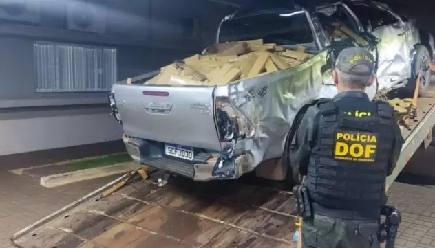 Os policiais conseguiram identificar que a caminhonete estava com registro de furto/roubo em Paranavaí, no Paraná.