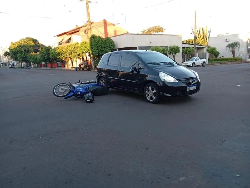 A colisão envolveu uma motocicleta Honda Biz e um automóvel Fit.
