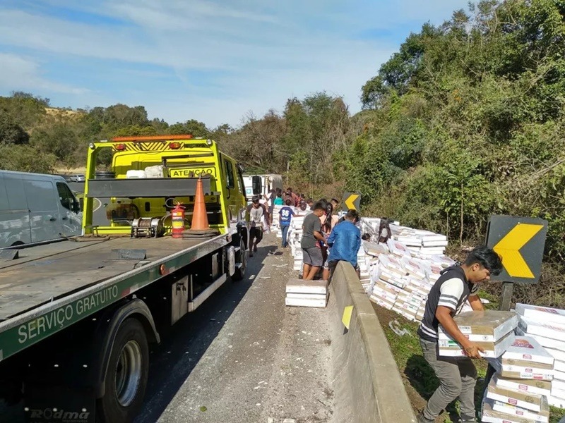 Ainda de acordo com a Polícia Rodoviária Federal, durante a chegada da equipe, os policiais se depararam com um grupo de cerca de 50 pessoas saqueando a carga de carnes congeladas.