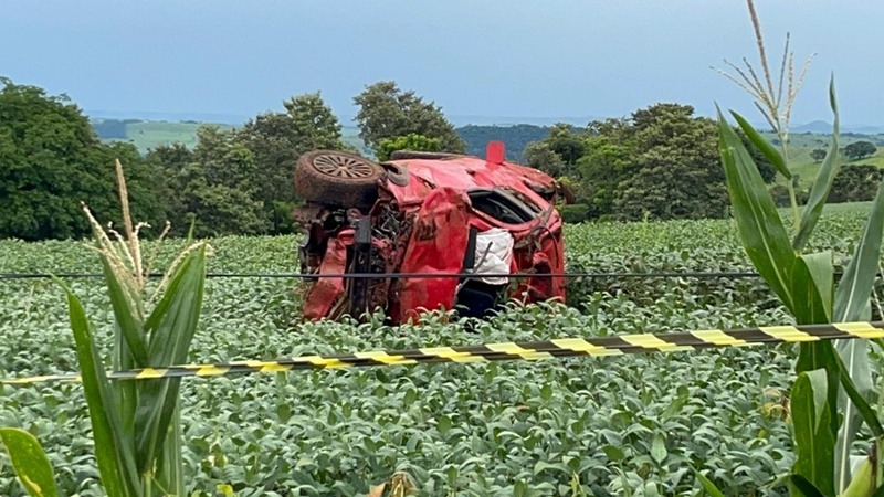 Segundo informado à reportagem, a Volkswagen Saveiro seguia na rodovia sentido Juvinópolis, quando após uma curva saiu da pista, atingiu poste de energia elétrica e capotou, parando em meio a lavoura de soja. Laudo pericial deve indicar a causa do acidente.