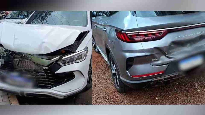 Uma colisão entre dois automóveis elétricos BYD chamou atenção na tarde desta sexta-feira (06) na Rua Guarani, na região central de Toledo, provocando transtornos no trânsito, mas sem deixar feridos.
