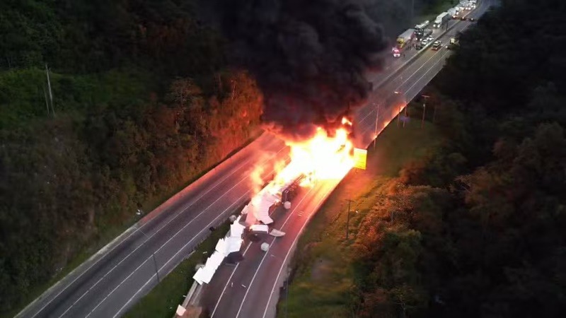 De acordo com a Polícia Rodoviária Federal, o caminhão, de uma conhecida transportadora e carregado com materiais diversos, saiu da pista e, em seguida, pegou fogo.