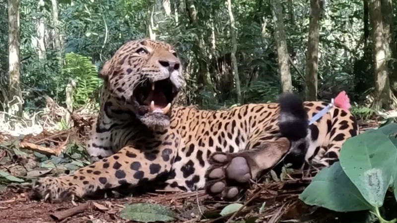 “É a única onça que a gente registrou até agora que já teve filhotes cinco vezes”, afirmou Yara, coordenadora executiva do projeto. Ela acrescentou “Pra gente é sempre uma alegria o registro de filhotes, sempre uma indicação de que a mata está bem, inteira, comportando realmente essa população de onças-pintadas.”