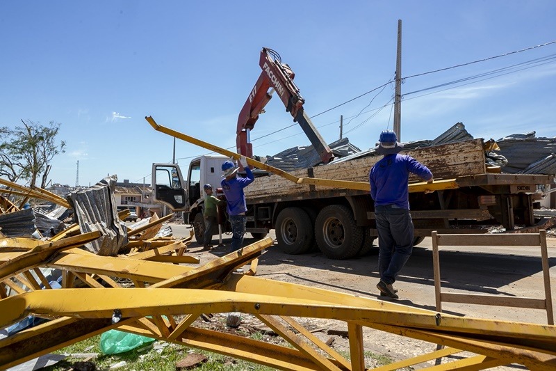 Contando com uma frota de 139 máquinas pesadas e a mobilização de mão de obra numerosa, as ruas de Rio Bonito do Iguaçu foram quase completamente desobstruídas nesta terça-feira (11). Isso não significa que o trânsito esteja fluindo normalmente na cidade, que teve 90% de suas estruturas atingidas por um tornado na última sexta-feira (7), resultando na destruição de residências e prédios públicos. Como há muitos trabalhadores na rua, além dos equipamentos de grande porte, formando o esforço de limpeza e retirada dos entulhos nos lotes danificados, a movimentação nas vias ainda demanda atenção e paciência.