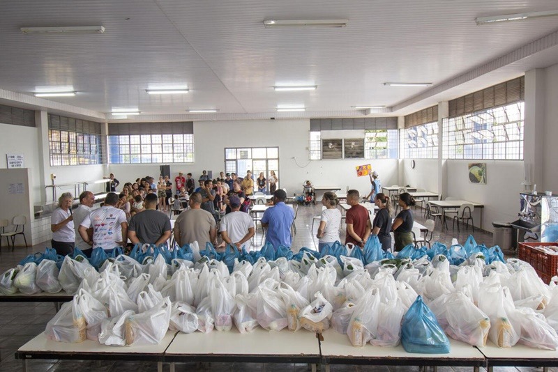 Foi realizada, nesta quarta-feira (21), a primeira entrega de cestas de alimentos de 2026 oriundas do Programa de Aquisição de Alimentos (PAA), parceria entre a Prefeitura de Toledo e o Governo do Estado. Aproximadamente 210 famílias do território atendido pelo Centro de Referência de Assistência Social (Cras I), da Vila Pioneiro, foram contempladas com os alimentos, em processo realizado pelas secretarias da Administração e de Assistência Social.