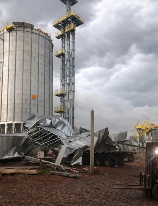O caso aconteceu na segunda-feira (16), quando rajadas intensas atingiram o município e comprometeram a estrutura que ainda estava sendo montada. O silo pertence a uma cooperativa e integra um projeto de ampliação da capacidade de armazenamento de grãos.
