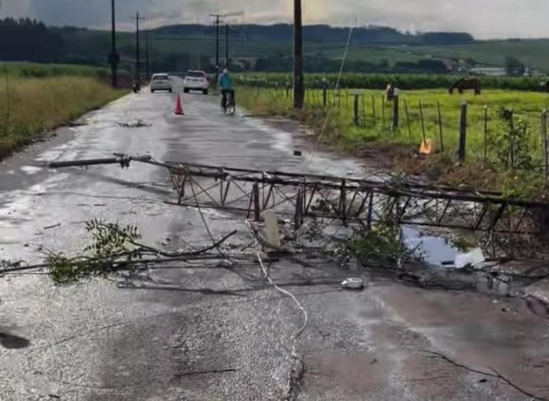 Os ventos também derrubaram uma torre, às margens da estrada da Lira, que acabou atingindo postes luz, que foram danificados. Fios de energia foram rompidos e a região está sem eletricidade.
