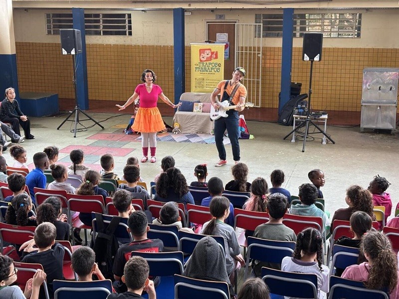 Alunos da Escola Municipal Tancredo Neves participaram, nesta segunda-feira (13), de uma atividade lúdica com a apresentação do espetáculo “Beto e Nina”, parte do projeto “Teatro nas Escolas”, promovido pela Secretaria da Cultura. A encenação, conduzida pelos artistas Mateus Gentil e Luciana Ferreira, integra o projeto “Tem História Por Aqui”, desenvolvido pela Cia. Trapos e Farrapos. A iniciativa utiliza teatro, música e contação de histórias para aproximar o público do universo literário de forma acessível e interativa.