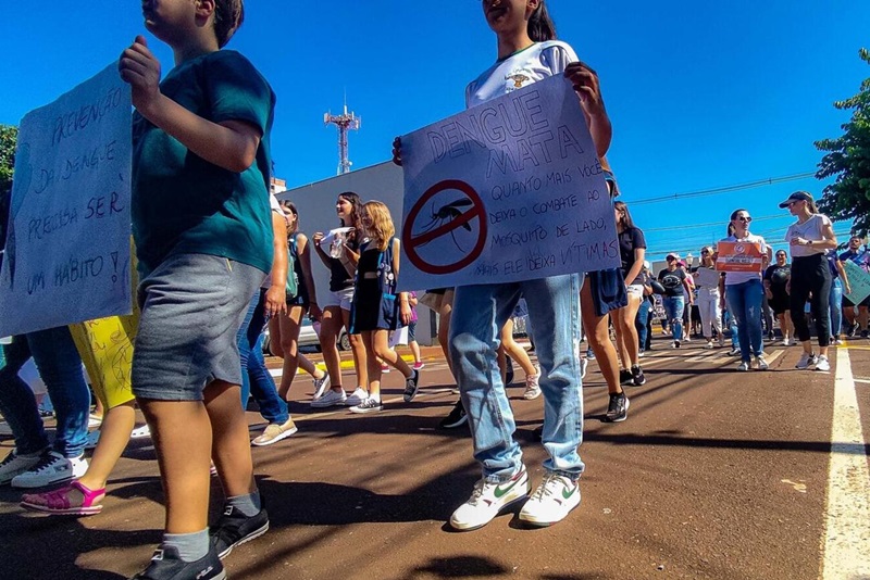 Uma grande mobilização contra a dengue aconteceu no último sábado (24). Servidores municipais, integrantes de entidades e clubes de serviços, estudantes e demais pessoas participaram de uma caminhada pela Rua Barão do Rio Branco, desde o Terminal Rodoviário Alcido Leonardi, passando pelas ruas da região central e encerrando a atividade na Praça Willy Barth. O intuito era chamar a atenção para o aumento dos casos da doença em todo o Brasil.
