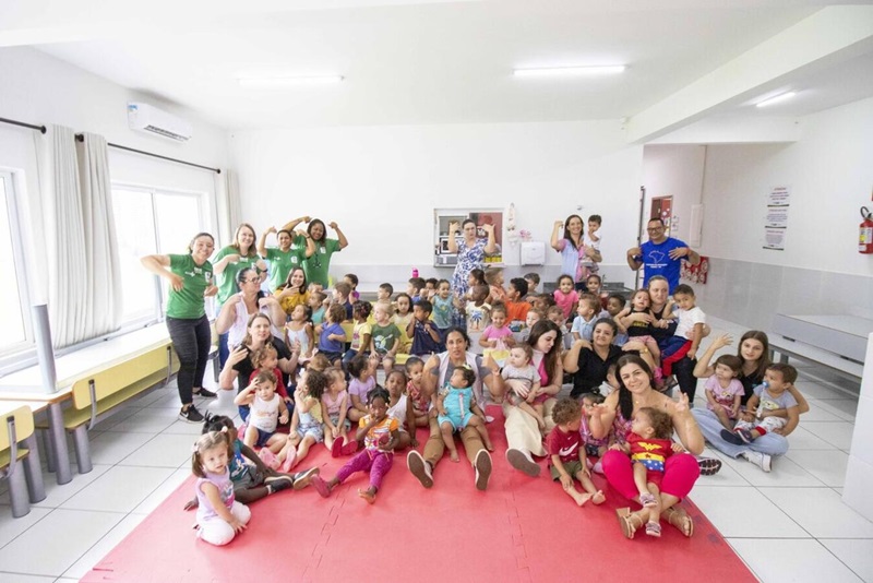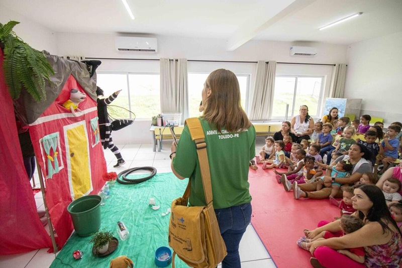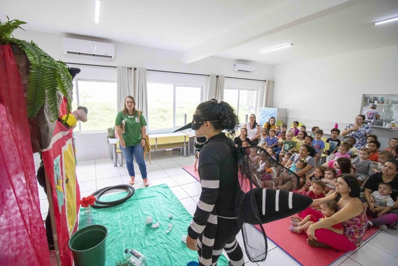 A manhã desta quinta-feira (29) foi especial para estudantes do Centro Municipal de Educação Infantil (Cmei) Sâmia Luíse Sanches Chiella, localizado no bairro São Francisco. Os alunos das turmas do Infantil 0, 1, 2 e 3 assistiram à peça teatral “Xô Mosquito”, na qual agentes de combate a endemias (ACEs) apresentaram às crianças os riscos causados pela dengue e as formas de preveni-la.
