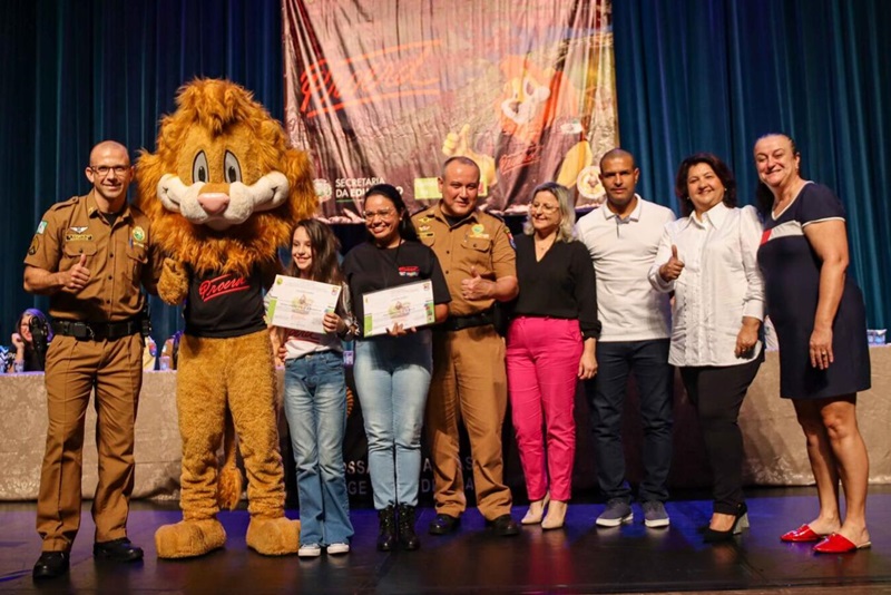 A plateia foi ao delírio quando o Daren, leão que é o mascote do Programa, entrou no Teatro Municipal. Também subiram ao palco os autores das duas melhores redações escritas durante a formação, ocasião em que leram os textos de sua autoria. Depois disso, os formandos fizeram o juramento em que se comprometem a carregar os ensinamentos do PROERD por toda sua vida.