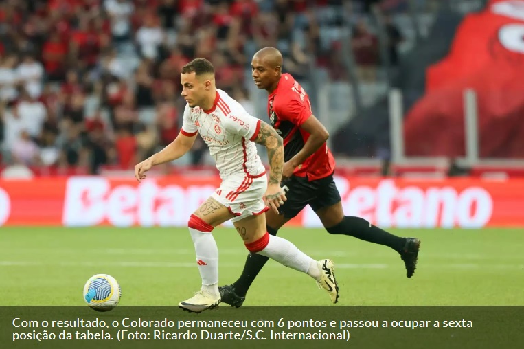 O Inter conheceu sua primeira derrota no Campeonato Brasileiro de 2024. Em partida válida pela terceira rodada e disputada na tarde desse domingo (21) em Curitiba (PR), o Colorado perdeu de 1 a 0 para o Athletico Paranaense e permaneceu com 6 pontos, na sexta posição da tabela. Agora, o Inter volta suas atenções para o duelo contra o Delfín-EQU, na próxima quinta-feira (25), às 23h, em Manta, pela Copa Sul-Americana.