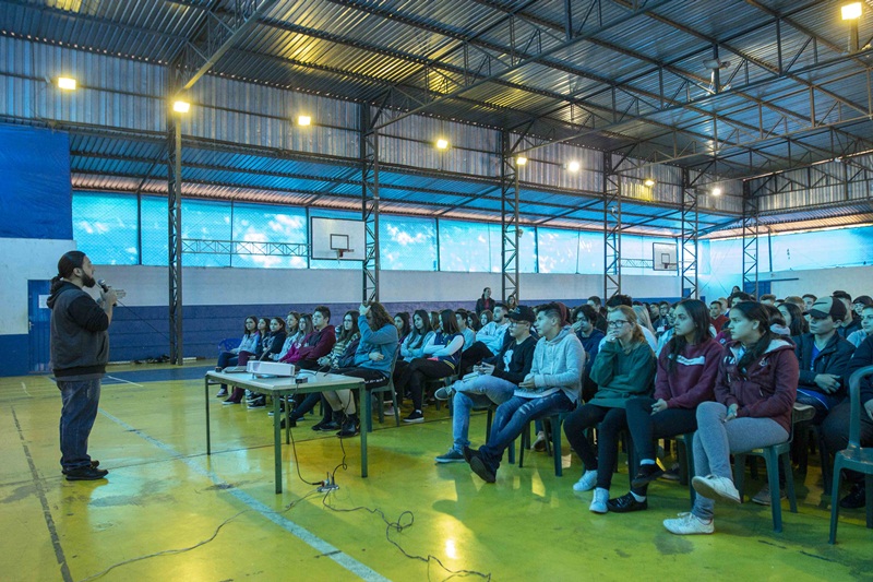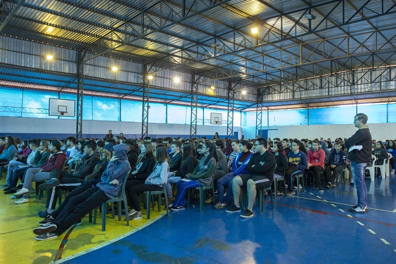 Públicas para a Juventude, a Prefeitura de Toledo por meio da Secretaria da Juventude realizou na manhã desta quinta-feira (16) a primeira palestra com o tema de prevenção ao suicídio. A ação aconteceu no Colégio Estadual Jardim Porto Alegre, com cerca de