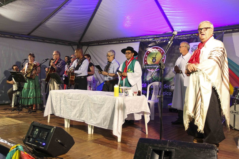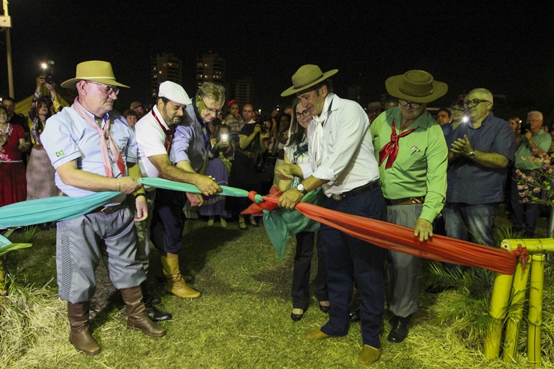 festejos e da valorização da cultura gaúcha. Junto com os demais Patrões dos centros de tradição gaúcha (CTGs) abriram as portas do acampamento e deram início às comemorações. O Acampamento Farroupilha está armado no Parque Ecológico Diva Paim Barth e é aberto