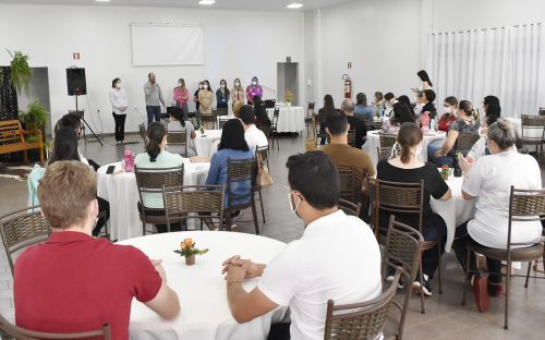 A sexta-feira (22) está sendo muito especial para os servidores do Departamento de Saúde Mental, da Secretaria Municipal de Saúde (SMS). O dia deles começou com uma recepção no Salão Social da Associação dos Servidores Municipais de Toledo (Assermuto), onde puderam apreciar um delicioso café da manhã, ouvir música boa com Neusa e Jonatan (integrantes do Coral Cristo Rei) e assistir uma palestra com a Dra. Ana Carolina Backer Nisiide sobre os cuidados que devem ser seguidos por aqueles que dedicam sua vida a cuidar dos outros.