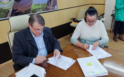 Mais uma demanda relacionada à educação foi resolvida pela administração municipal. Na segunda-feira (16) foi firmado o contrato para o transporte escolar dos alunos do ensino médio (convencional ou técnico), que a partir deste ano conta com a sexta aula. Serão atendidos 77 alunos, conforme levantamento do Núcleo Regional de Educação (NRE). O custo diário da manutenção do serviço será de R$ 3.237,26, totalizando R$ 64.745,20 por mês, considerando os dias letivos.