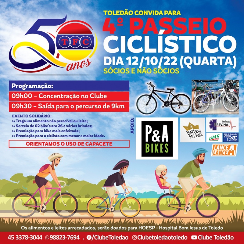 Para encantar e divertir mais as crianças, o clube ainda vai oferecer brinquedos infláveis, algodão doce picolé. Reis salienta que 12 de outubro é uma data importante para o Toledão. “É o dia de Nossa Senhora Aparecida, dia das crianças e quando começamos a nossa temporada. Uma data especial e toda a equipe está animada e empolgada para receber os nossos associados”, finaliza.
