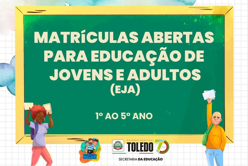 A Educação de Jovens e Adultos (EJA) de Toledo inicia na próxima semana o mutirão itinerante de matrículas, que passará por cinco pontos da cidade. Podem participar pessoas a partir dos 15 anos de idade que desejam ser alfabetizadas ou seguir os estudos nas turmas presenciais do 1º ao 5º ano do Ensino Fundamental (Fase I).
