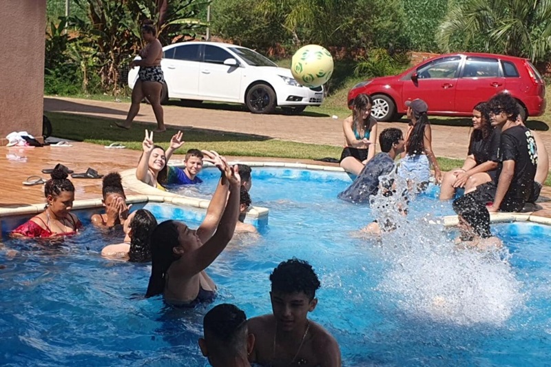 Diversos serviços oferecidos pela Secretaria de Assistência Social (Smas) estão entrando diminuindo o ritmo de suas atividades por conta das festas de final de ano. Um deles, o Projovem Adolescente, Serviço de Convivência e Fortalecimento de Vínculos (SCFV) envolvendo adolescentes, promoveu um momento diferenciado para marcar a despedida de 2022: uma tarde na piscina com várias brincadeiras, conversas, diversão e descontração. Aproximadamente 100 jovens participaram do evento.