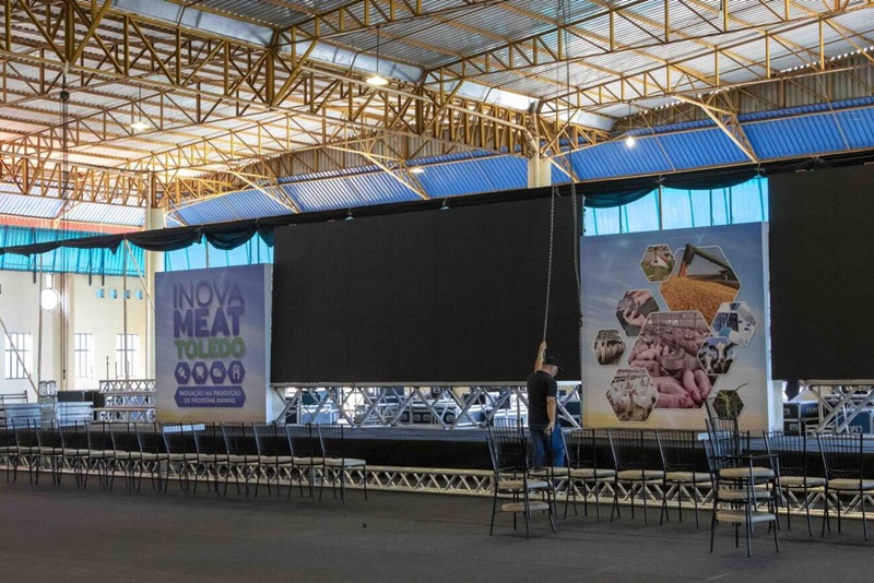 Os preparativos para o INOVAMEAT 2023 estão na reta final e, nesta segunda-feira (10), era grande a movimentação com o intuito de finalizar os estandes. A partir das 16h30 da terça-feira (11) os portões já estarão abertos para o credenciamento e a abertura do evento acontece às 19h, com a palestra ‘A importância do Agronegócio para o Brasil e para o Mundo’. O momento será comandado pela palestrante, consultora, mentora, escritora, articulista e idealizadora de iniciativas de imersão no universo agro, Andrea Cordeiro, pelo representante da BRF, Rafael Menute, e pelo secretário estadual de Agricultura, Norberto Anacleto Ortigara.