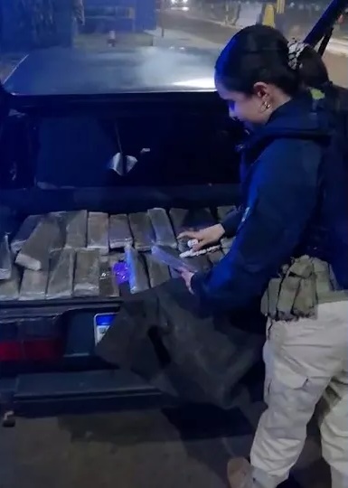 O veículo e a droga foram encaminhados à Polícia Federal.