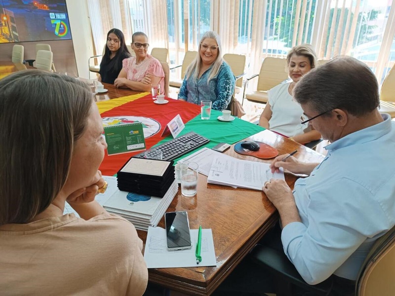 Ao lado da secretária de Recursos Humanos, Marta Fath, o prefeito de Toledo, Beto Lunitti, recebeu, na tarde desta quarta-feira (8), na Sala de Reuniões de seu gabinete, cinco servidoras públicas municipais que acabam de cumprir sua missão na ativa. Antes de assinar a portaria de aposentadoria deles, o chefe do Executivo prestou uma singela homenagem às professoras Angela Silvana Kolberg, Angela Maria Rippel, Nazíria Maria Teixeira e Vanderli Carolino e à assistente em desenvolvimento social Maria Aparecida Guimarães de Niz.