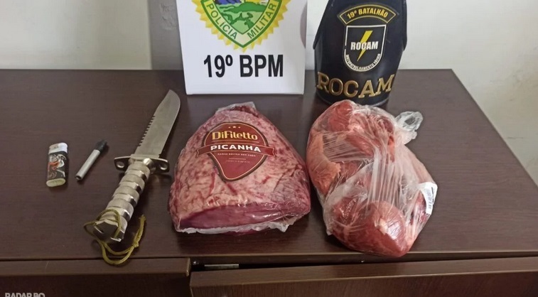 Ao abordar o suspeito, que havia entrado em um supermercado na área central da cidade, os policiais encontraram em sua mochila as peças de carne furtadas do açougue, além de uma faca. O homem confessou o crime e foi preso em flagrante.