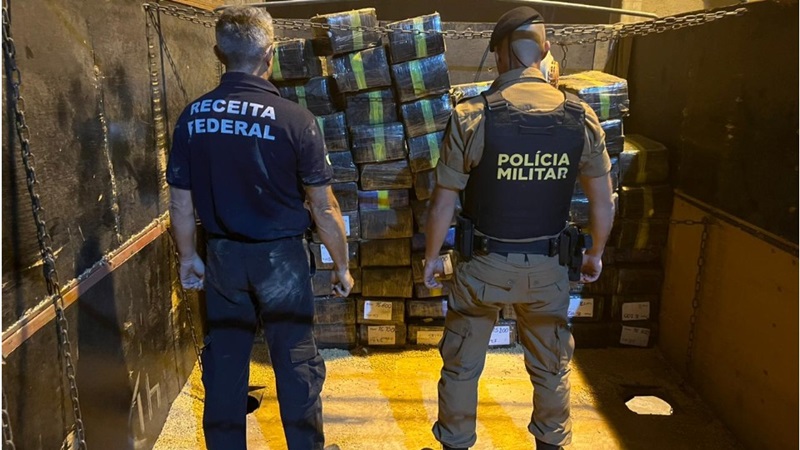 Os policiais realizaram a abertura do compartimento de carga do caminhão, e foi encontrada grande quantidade de maconha em formato de tabletes, que totalizou mais de 1.945 quilos.