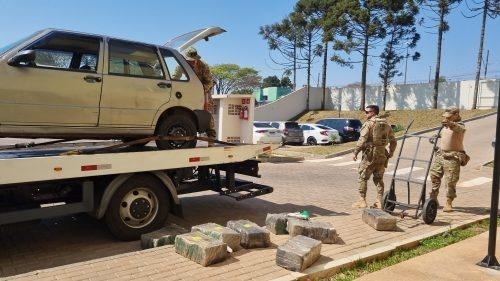 Durante a inspeção, foram encontrados vários fardos de maconha escondidos nos compartimentos do veículo.
