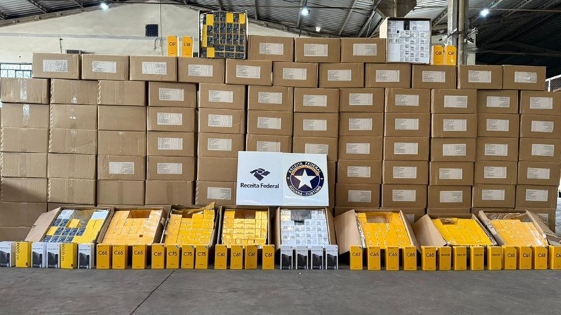 A Receita Federal apreendeu cerca de 3.200 smartphones de origem estrangeira durante operação em uma transportadora de Cascavel.
