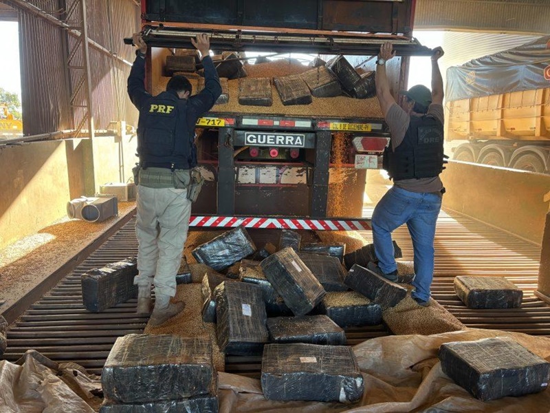 A droga estava escondida sob uma carga de soja transportada por um caminhão com placas paraguaias.
