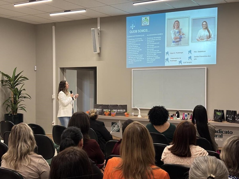 A tarde começou com orientações práticas sobre cuidados com os pés, ministradas pelas podólogas Lia Budtinger e Alessandra Gomes. Na sequência, a maquiadora Patrícia Martins, convidada pelo Spaço da Beleza, compartilhou com o público sua trajetória de superação e conduziu uma palestra motivacional sobre autoestima e autocuidado. O momento incluiu ainda coffee break, curso de automaquiagem e distribuição de brindes.