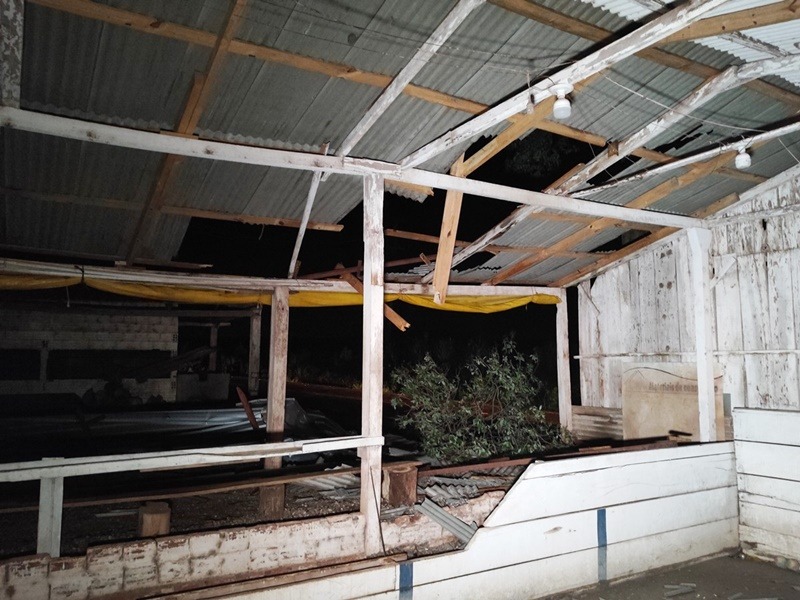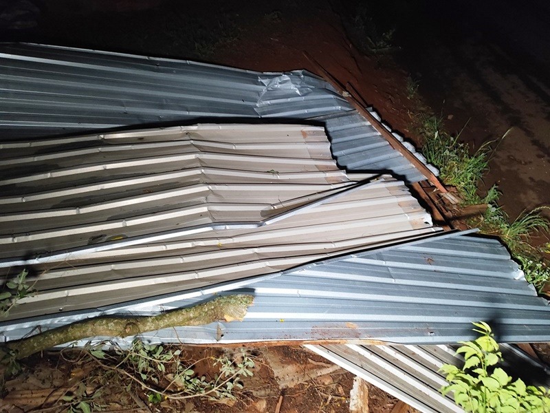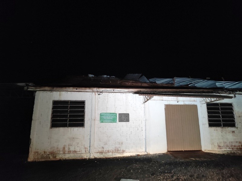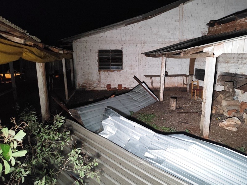 Um vendaval rápido, com duração de cerca de 15 segundos, provocou estragos no clube da Linha Pietrowski e na cancha de bocha, no interior de Nova Santa Rosa, na noite deste sábado (20).