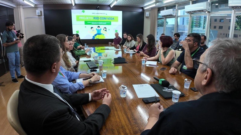 A Sala de Reuniões do Gabinete do Prefeito foi o cenário, na tarde desta sexta-feira (10), do pré-lançamento do projeto “Rio com Vida”, iniciativa que estabelece as bases para a recuperação ambiental da parte alta (área urbana) da microbacia do Rio Marreco, um dos cursos d’água mais importantes de Toledo. O encontro marca o início de uma nova etapa de mobilização que une poder público, instituições de ensino, entidades ambientais e sociedade civil em torno de um mesmo objetivo: revitalizar o rio e restabelecer seu equilíbrio ecológico e paisagístico.