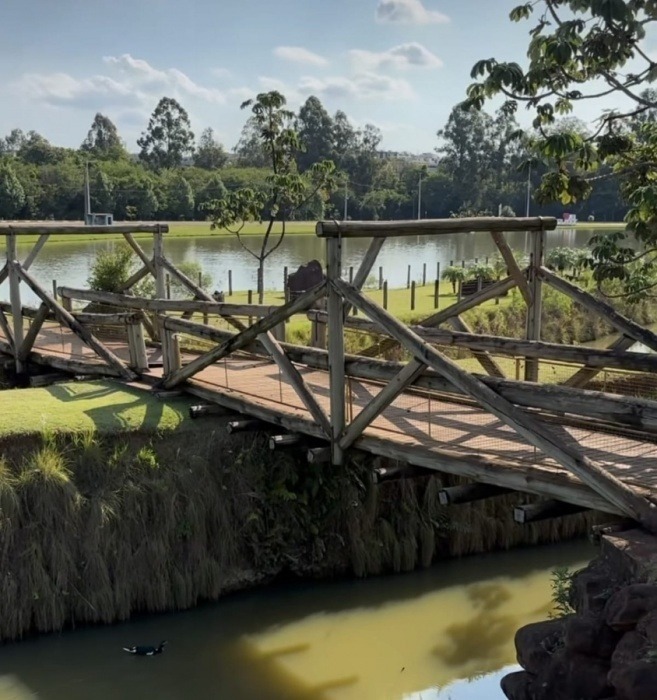 Ponte do Selo do Amor, no Parque do Povo Luiz Cláudio Hoffmann, é interditada para manutenção preventiva