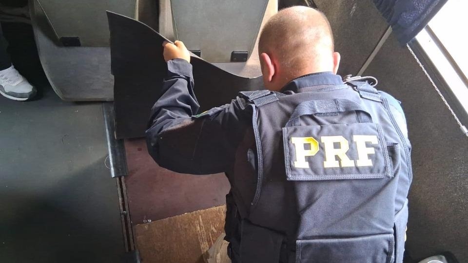 Durante a inspeção, os agentes encontraram um compartimento oculto no interior do ônibus.