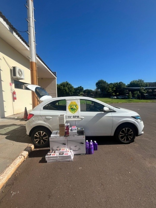 Uma equipe policial apreendeu diversas mercadorias de origem estrangeira sem comprovação fiscal na manhã de 19, por volta das 07h30, durante patrulhamento preventivo nas vias de acesso ao município de Toledo. Os agentes avistaram um Chevrolet Onix aparentemente carregado em excesso, o que chamou atenção por se tratar de uma região frequentemente utilizada para transporte de produtos de contrabando ou descaminho.