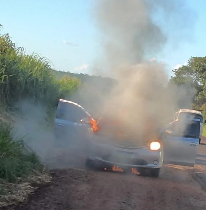 O fogo começou na região do capô e se espalhou rapidamente, destruindo completamente o automóvel. Apesar da situação, tanto a condutora quanto a passageira — mãe e filha — conseguiram deixar o carro a tempo e não tiveram ferimentos.